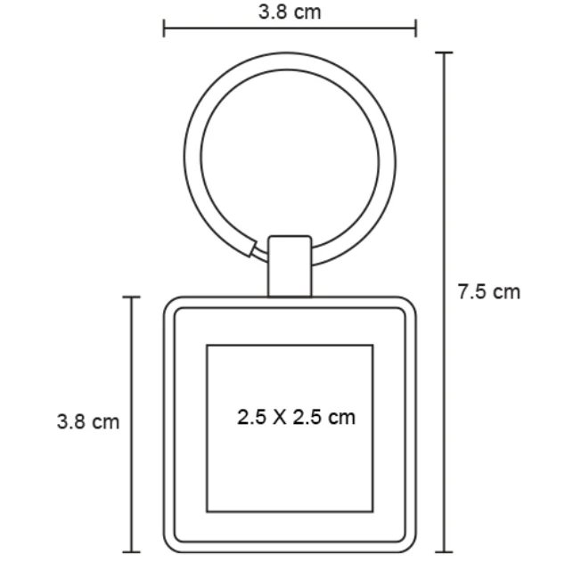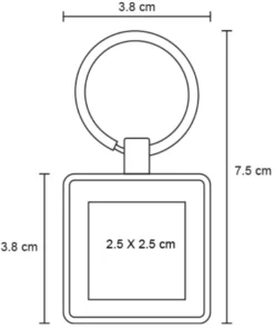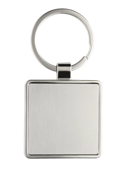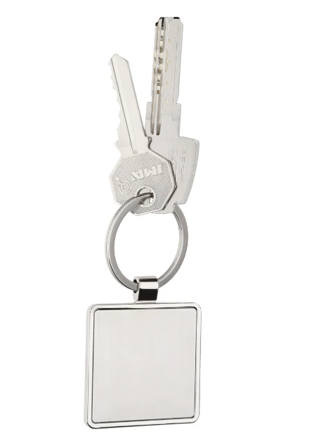 Llavero metálico de placa solida en forma de cuadrado con arillo reforzado.